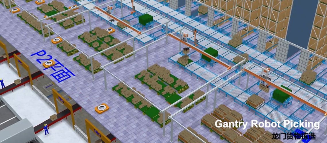 本项目采用自动化存储,关节机器人码垛,龙门机器人拣选,AGV机器人搬运排序,以及功能全面的WMS及TMS系统